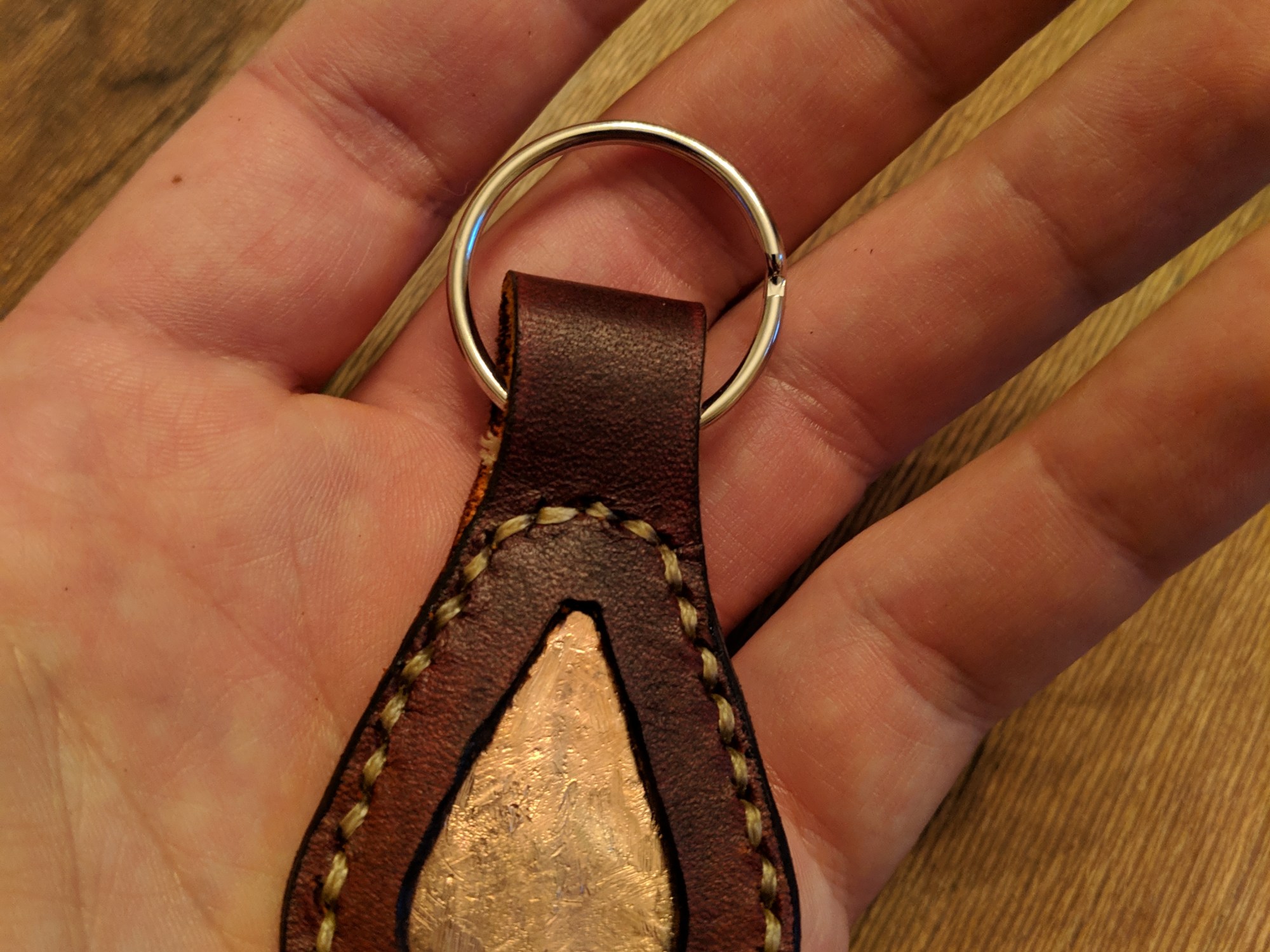 These are some nifty keychains I made as presents to the team using copper pipe pulled out of the ground.
