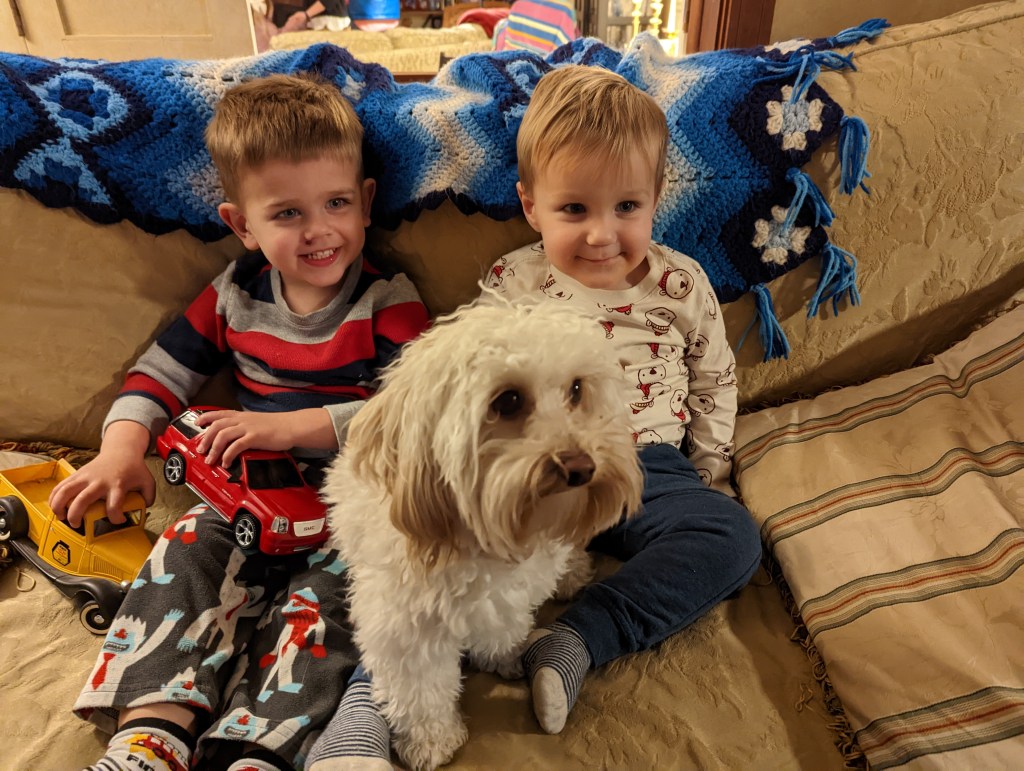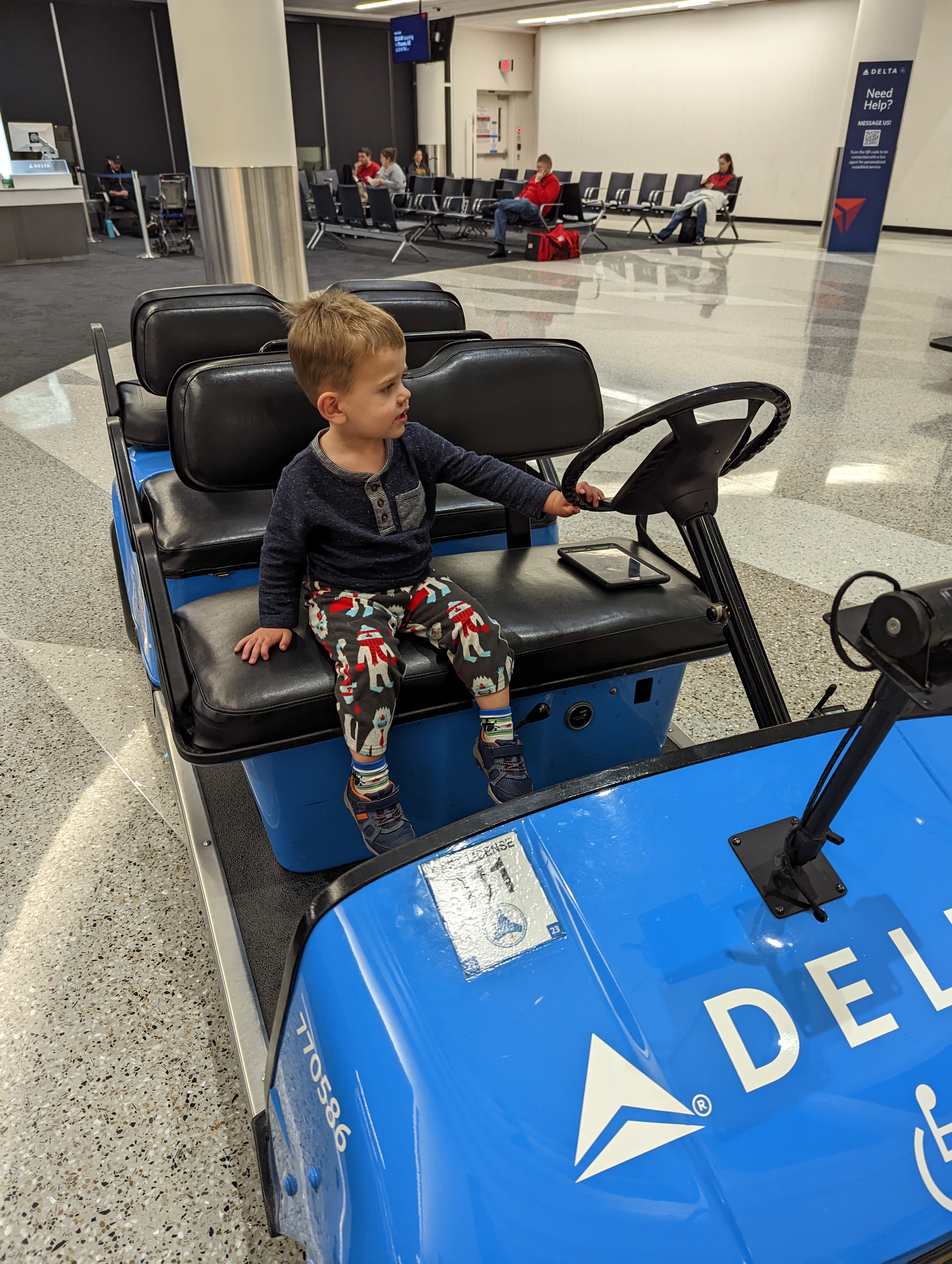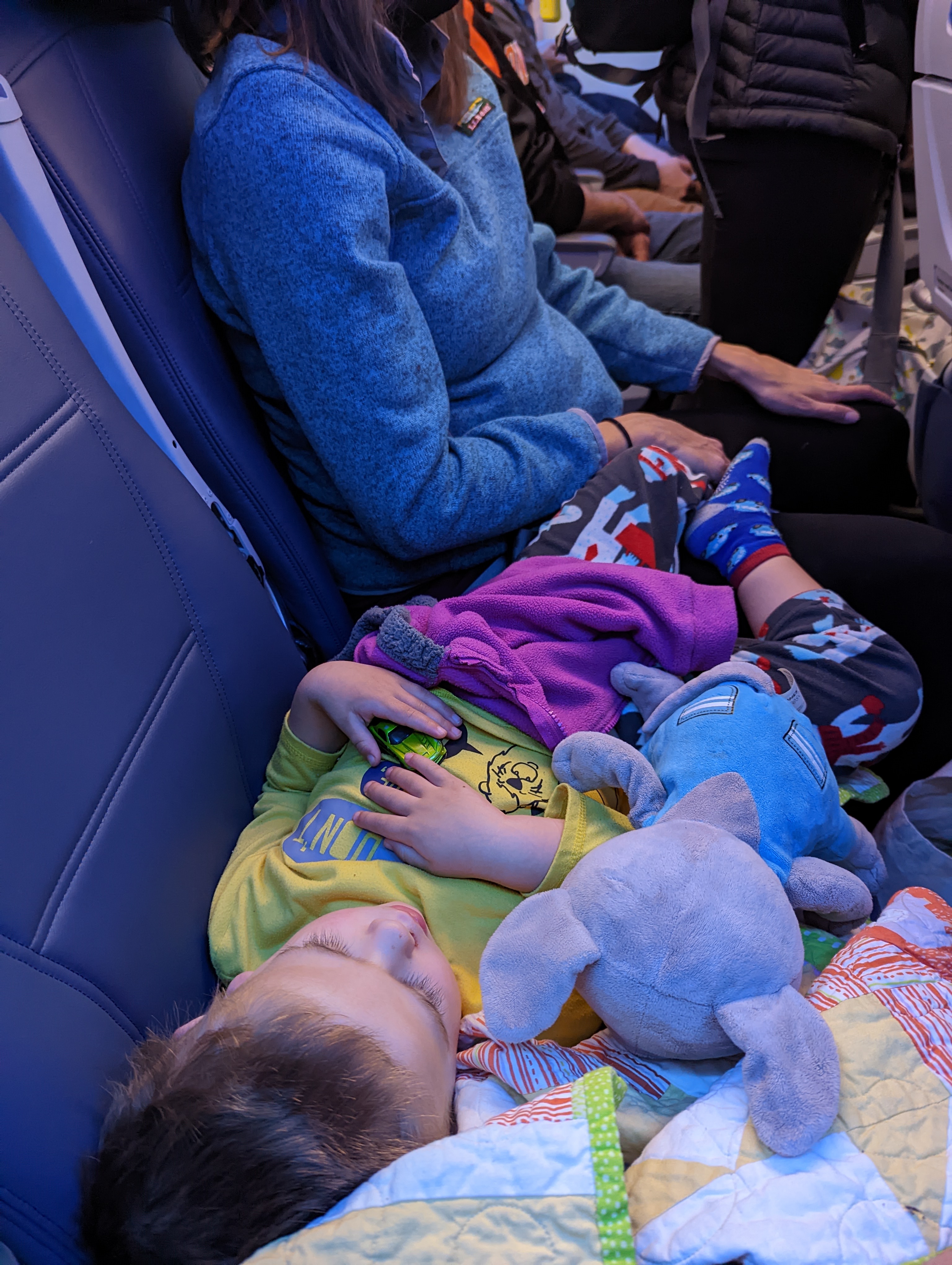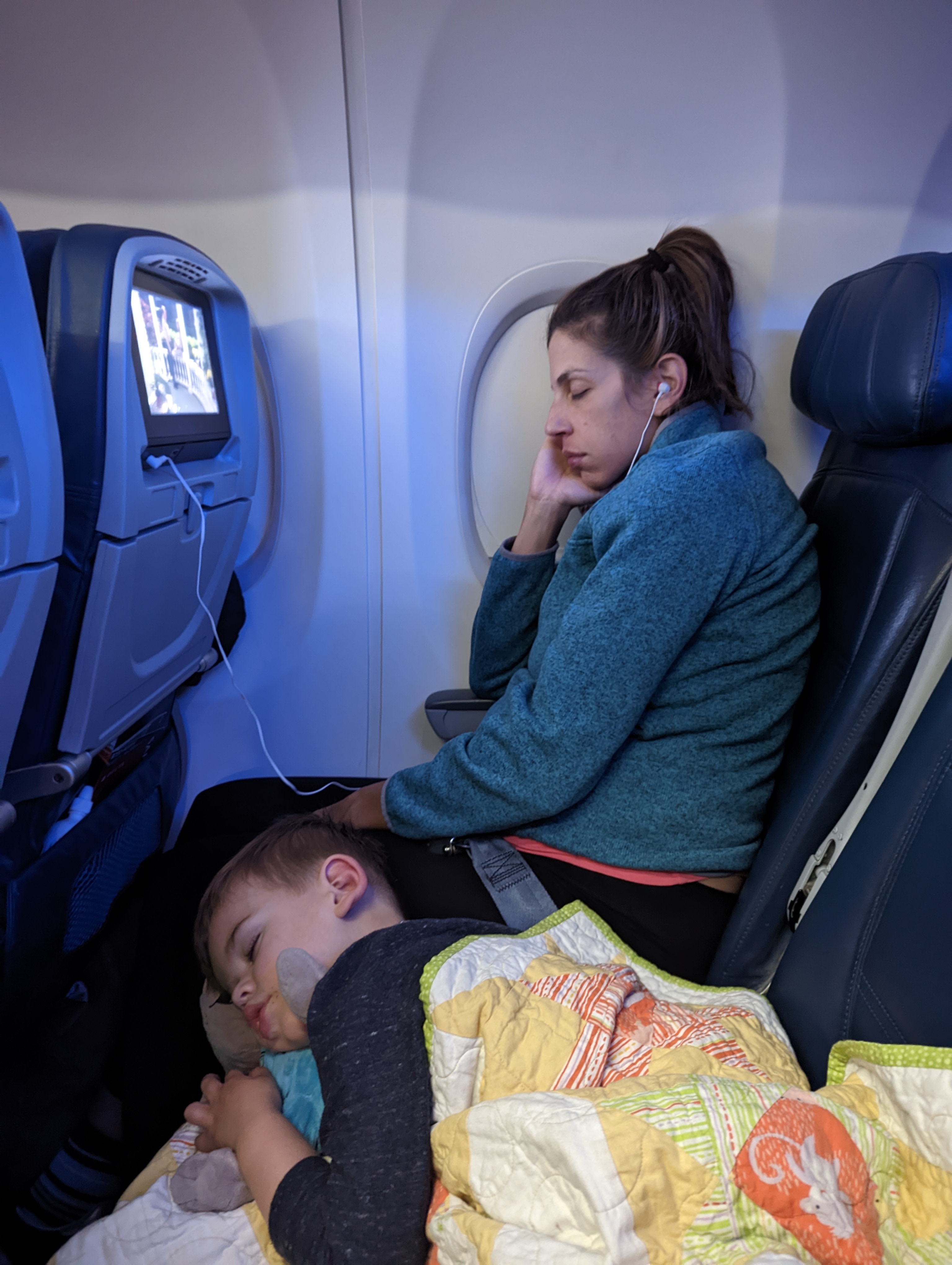 Well, you’re in luck again! Maureen and I (mostly me) had a ton of anxiety around this, as we had booked red-eye flights and really had no idea how Odin would handle the trip. Amazingly, he did great. Obligatory pictures below: