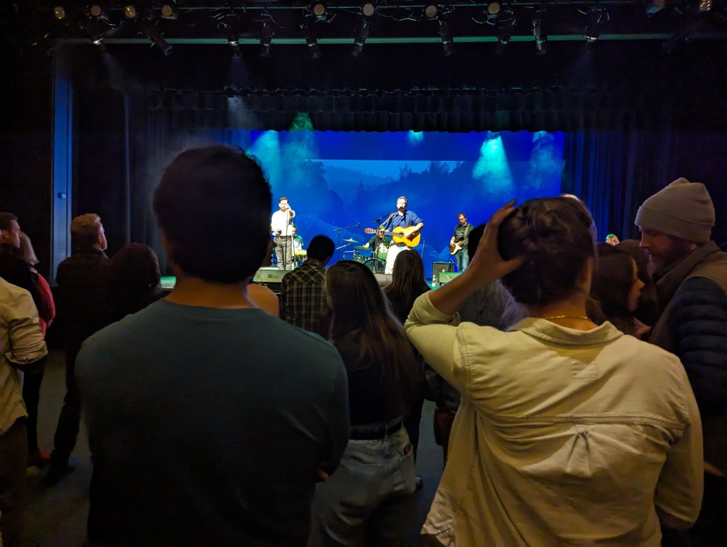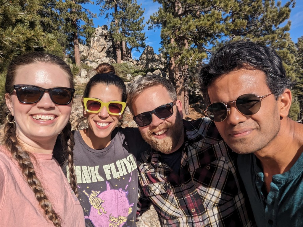 So, the backstory here- Margaret and Raghib’s wedding turned virtual when COVID first hit, and Raghib being the romantic guy he is, wanted to make the event more special by having Margaret’s favorite band (Golden Shoulders from Grass Valley, CA) make a quick video saying “congratulation”. Instead, they made a custom recording of her favorite song and sent it- very cool! Well, fast forward a few years and they played a show the night after Thanksgiving out here, so we went. At the end of the concert, the main singer stopped, told the entire story of the wedding video and then called out Margaret and Raghib in the audience and played their wedding song while they danced! Like Moses, the crowd parted to make room and was a really special event.