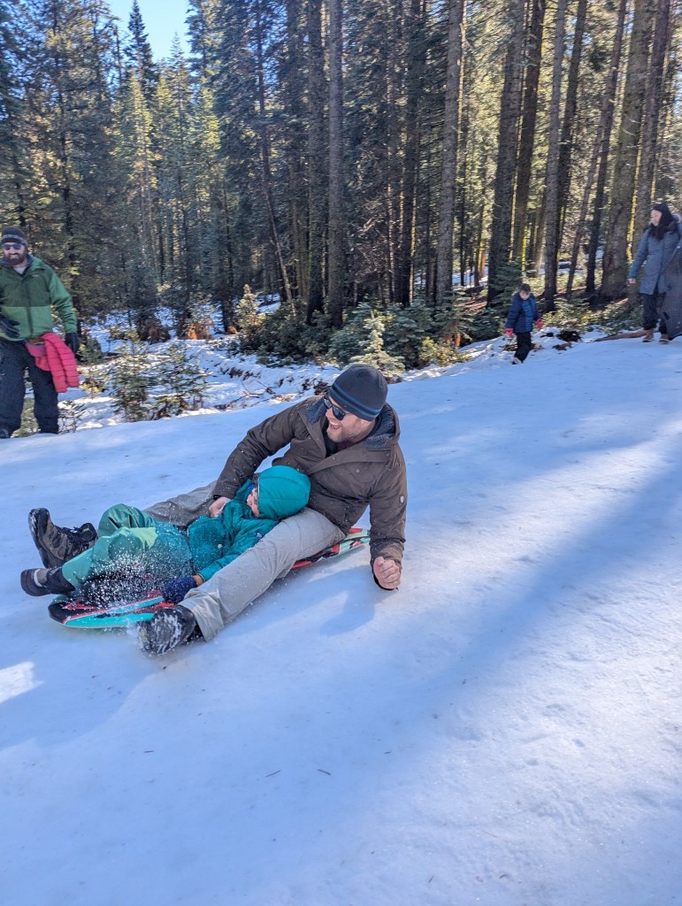 We rented a house near Yosemite National Park 4 days leading up to NYE with two other couples (Jenny/Mikey and Jimmy/Beth). It was such a great trip- allowed us to relax after the chaos of hosting and all things Christmas. Jimmy and Beth’s kids are also very into babysitting which gave us some time to hang out with the adults. The tip was great, and included Ice Skating in the shadow of Half Dome, Sledding, All things snow, and Maureen consoling Odin in some of the most beautiful scenery as he dealt with car sicknesss.