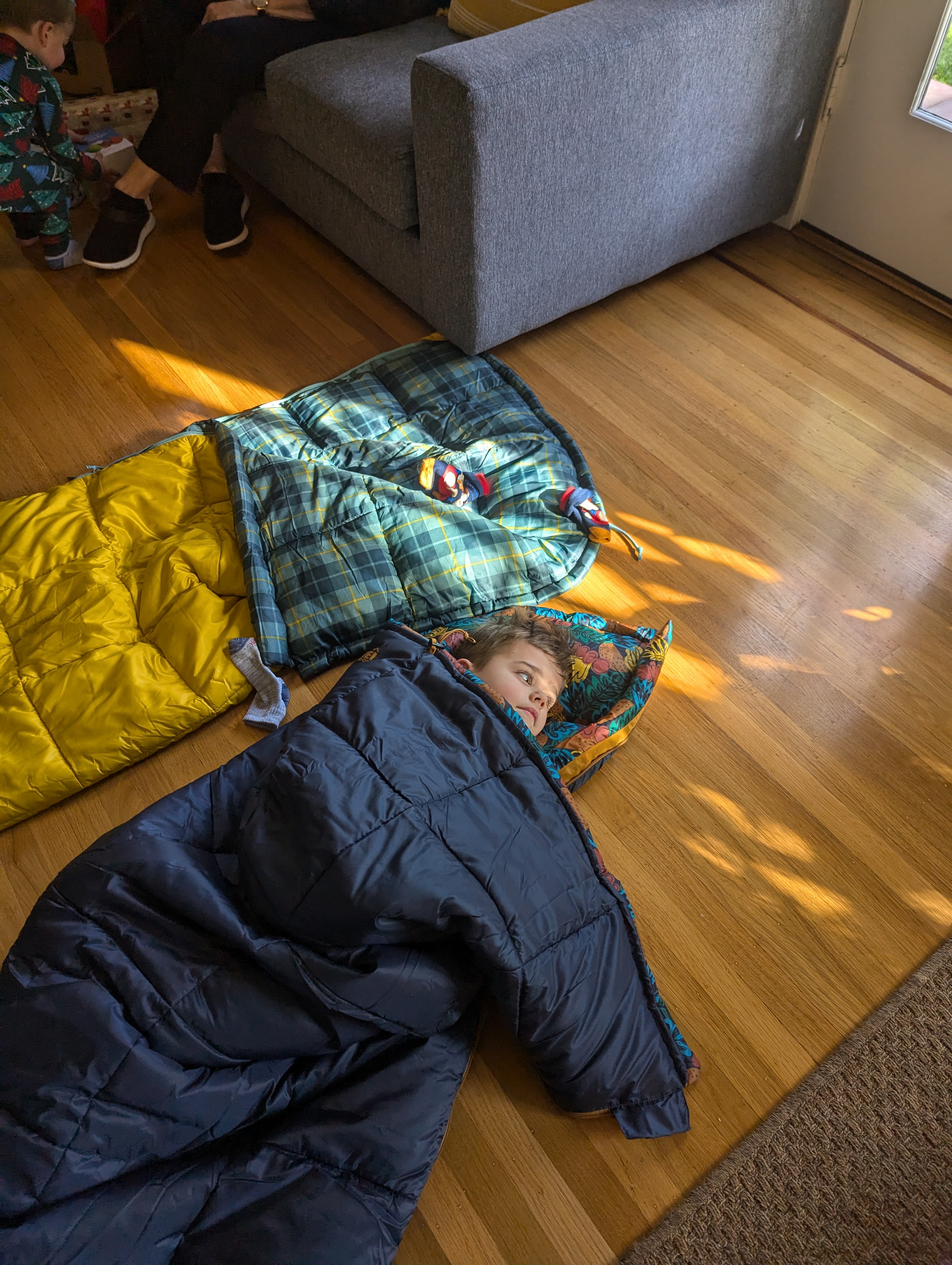 - Kids enjoying their new sleeping bags